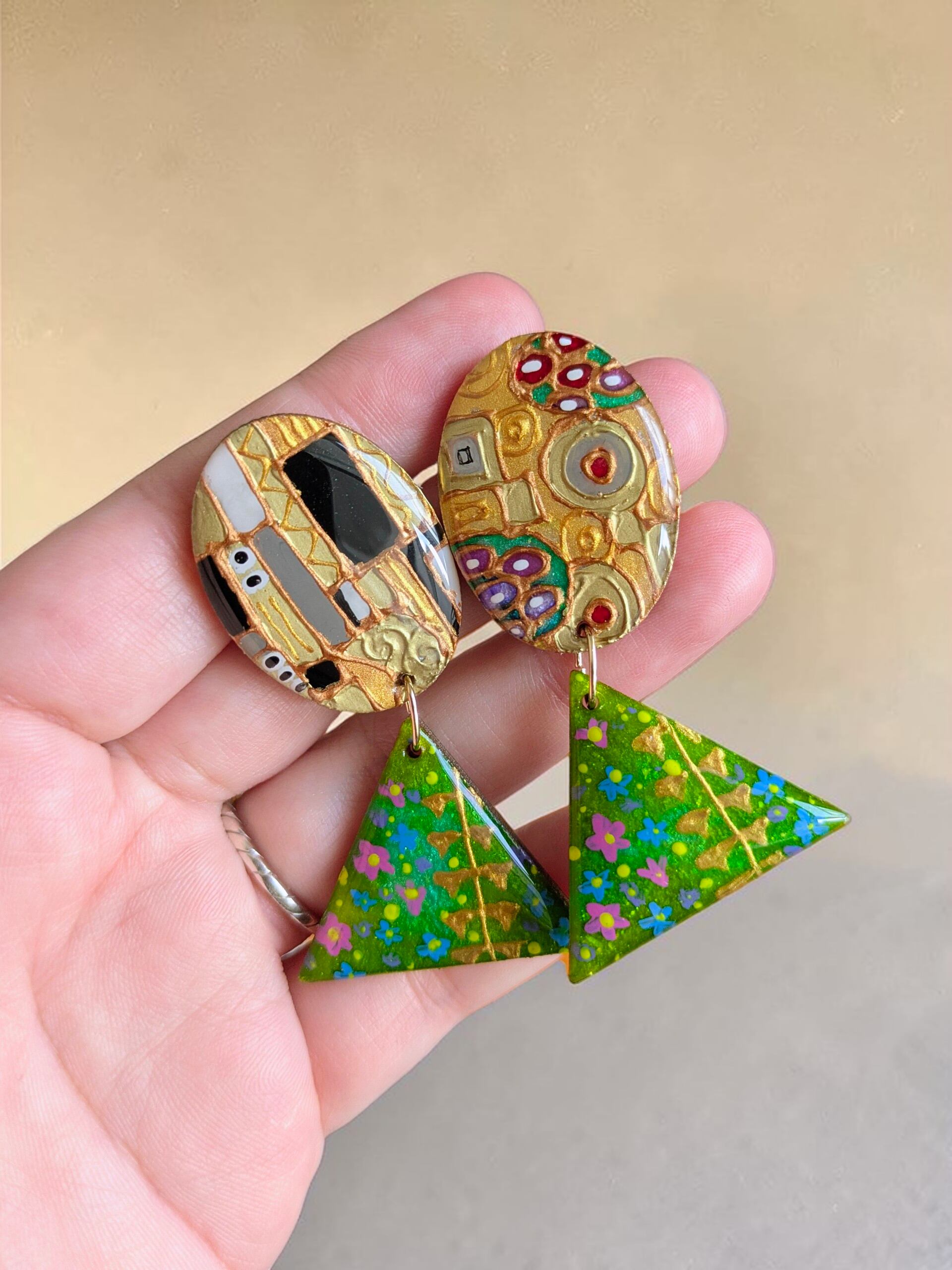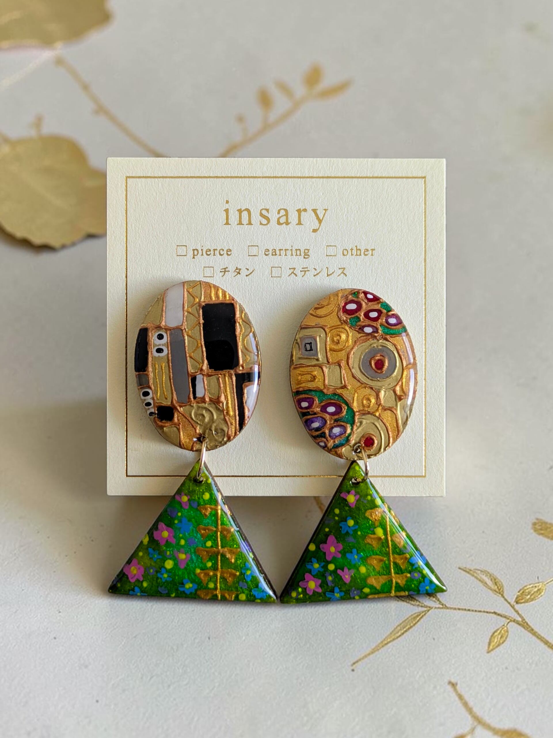 絵画ピアス/イヤリング 【クリムト・接吻】